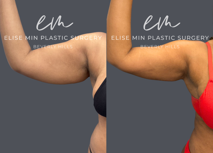 This 35-year-old patient achieved her goal weight with tirzepatide but remained concerned about residual fullness of the abdomen, flanks, and upper arms. Although brachioplasty was discussed, she preferred to avoid the longer scar. We pursued a contouring approach focused on slimmer arm proportions with minimal visible scarring—liposuction. She is pleased that her arms now fit comfortably in her clothing without needing to size up.